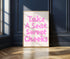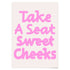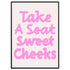 Das Poster mit der Aufschrift “Take a Seat, Sweet Cheeks” in rosa Schrift ist ein echter Hingucker. Ob als Geschenk zum Hauskauf oder zur Einweihung – es bringt Charme und Humor in jedes Zuhause.