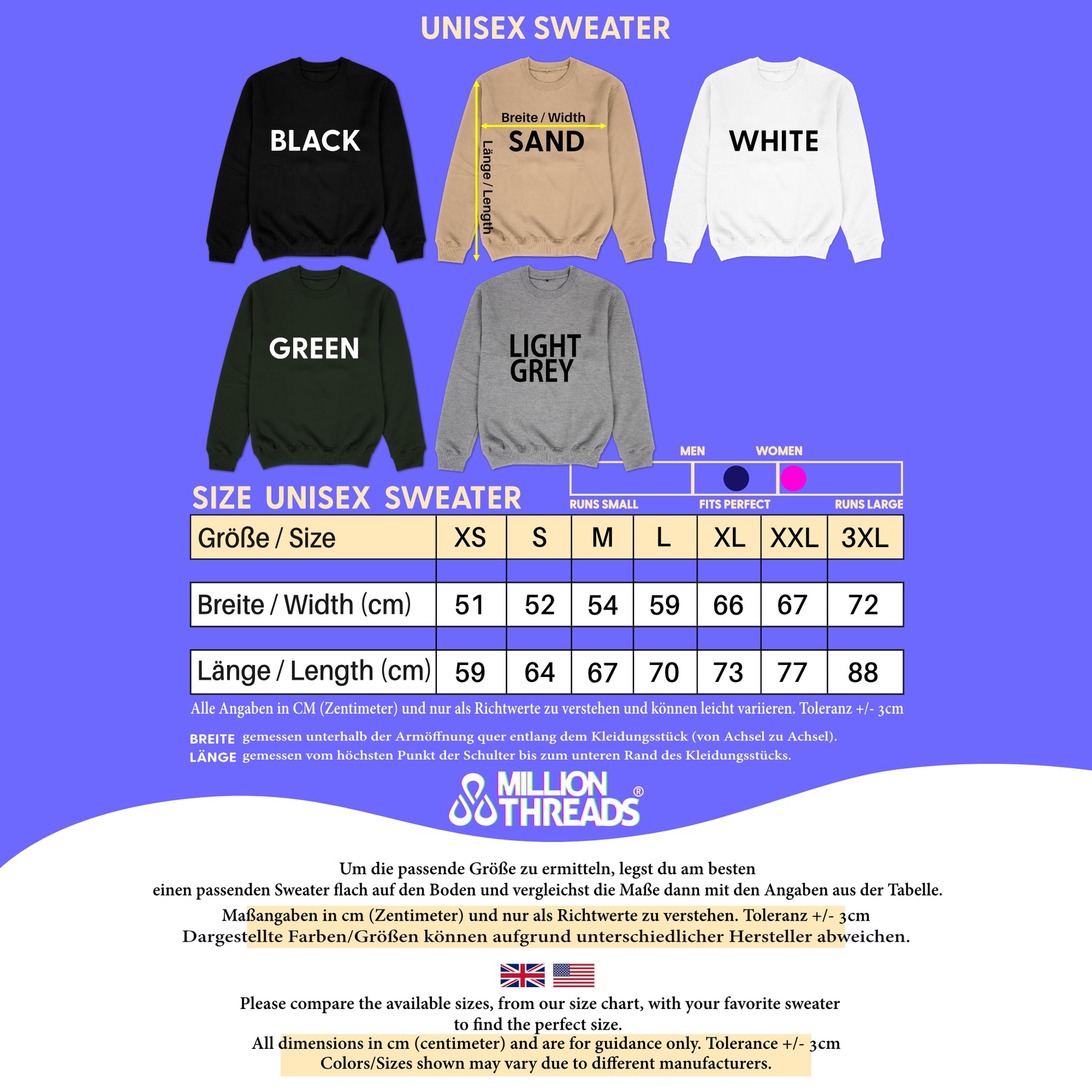 Unsere super weichen Unisex Sweater und Hoodies sind wie für dich gemacht. Denn der lässige, gerade und moderne Schnitt passt sich deiner Körperform perfekt an. In der Regel kannst du deine normale Größe bestellen. Für einen Oversize-Look wie auf den Bildern wähle 1-2 Nummern größer. Bitte beachte aber auch unbedingt unsere Größentabelle und vergleiche diese mit einem gut sitzenden Pullover, am besten deinem Lieblings-Sweater.