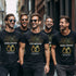 Die Shirts werden zweifarbig bedruckt. Alle farbigen Shirts bekommen einen Weiß/Gold Print und die weißen Shirts einen Schwarz/Gold Print.
