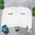 Der Preis ist pro Sweatshirt. Für ein Set bestelle bitte zwei in gewünschter Farbe, Aufdruck sowie Größe.